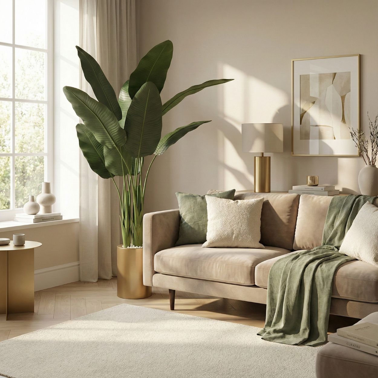 Créer une ambiance "Urban Jungle" de luxe en l'associant à des matériaux comme le velours, le marbre ou le bois sombre.