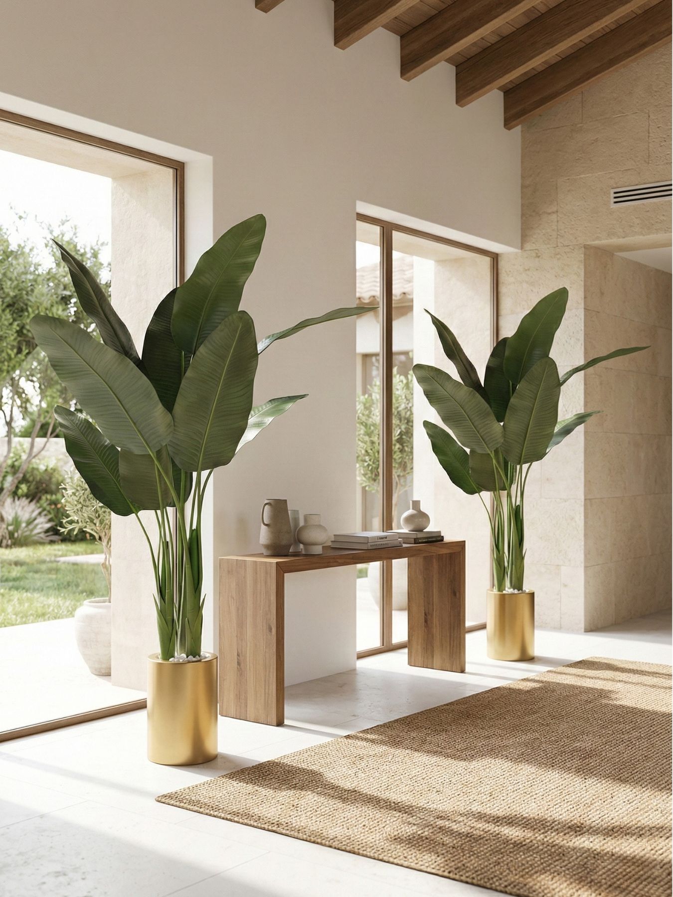 Le Strelitzia est la plante architecturale par excellence. Grâce à sa hauteur, il est parfait pour :